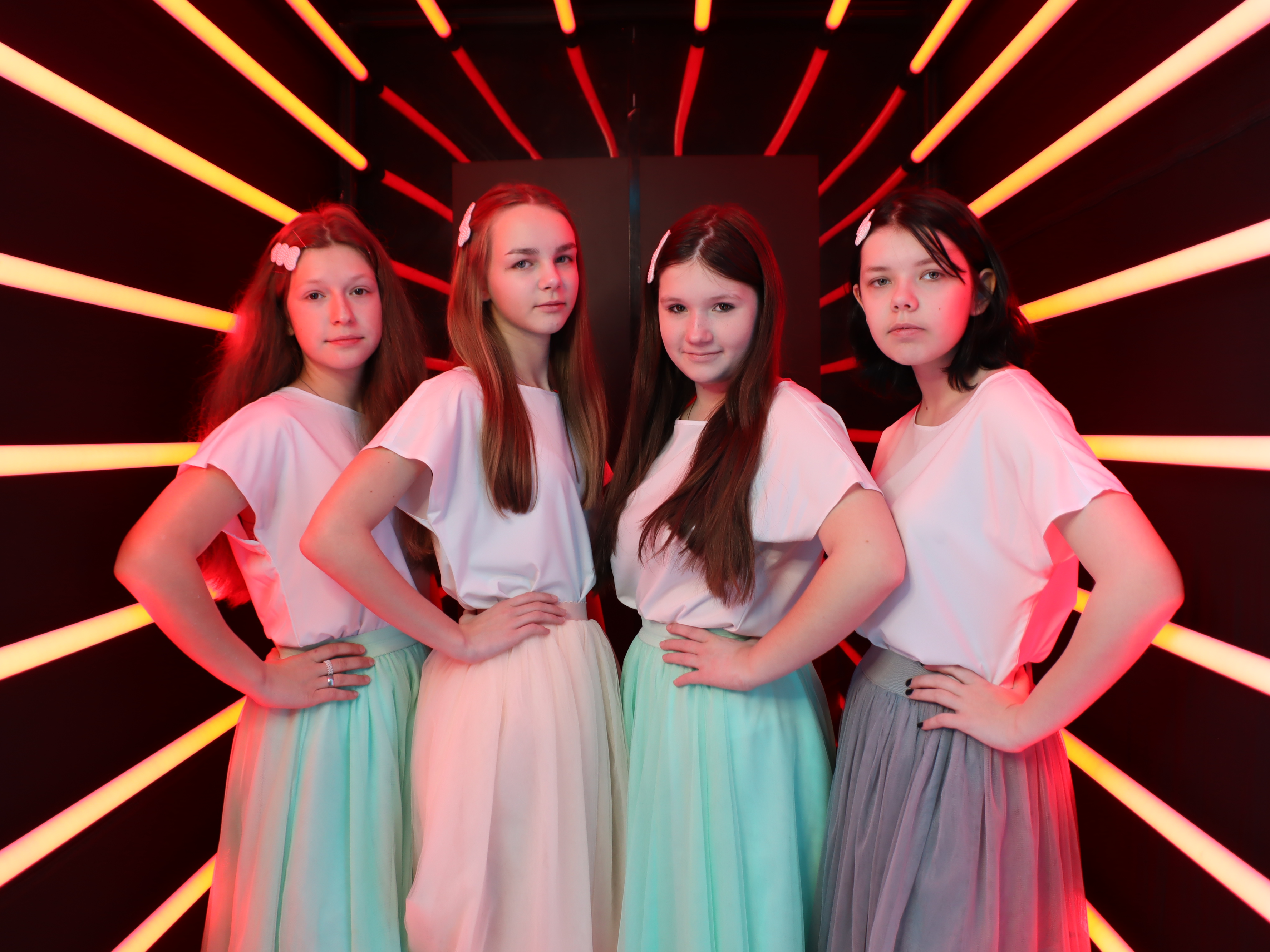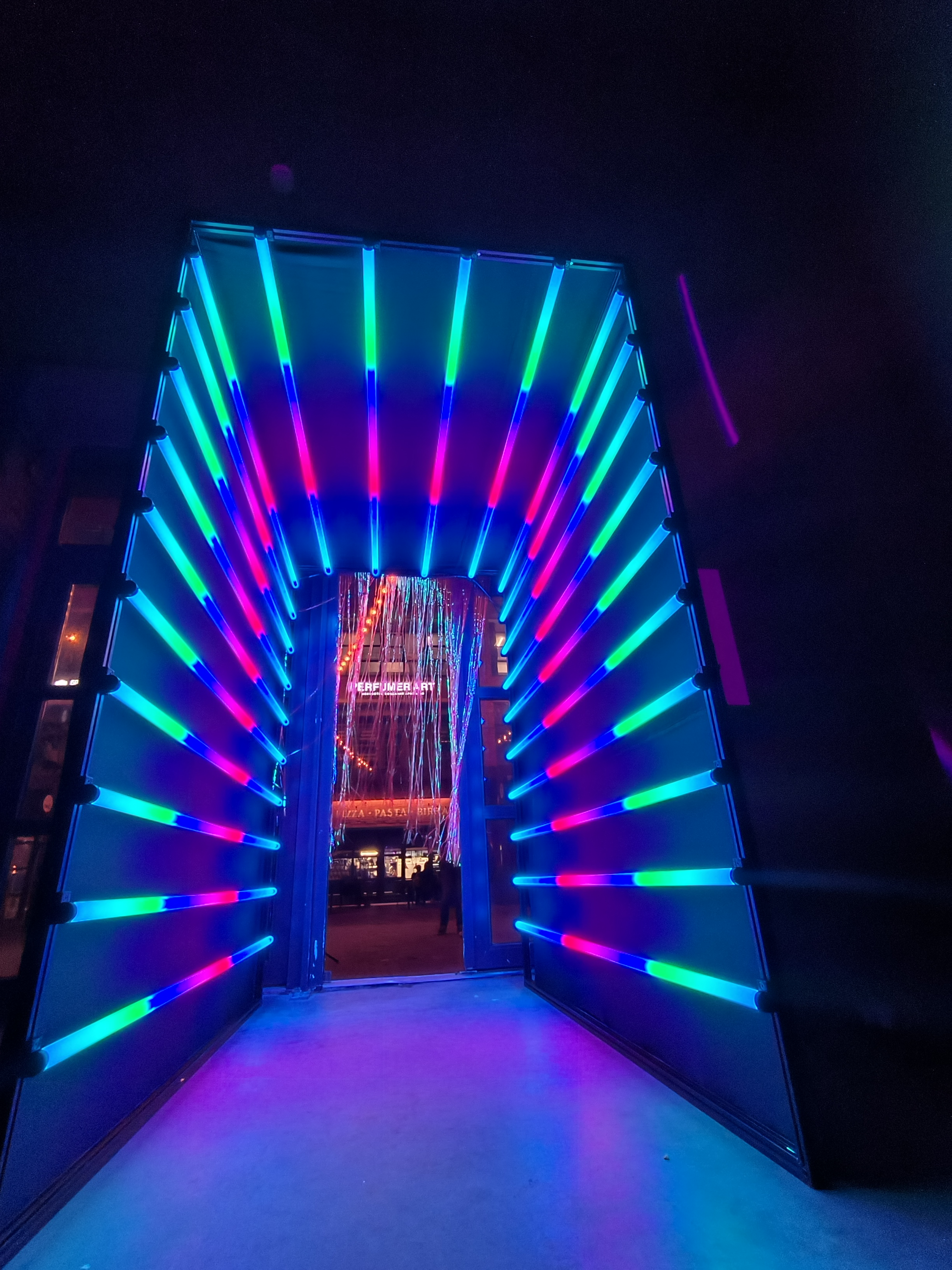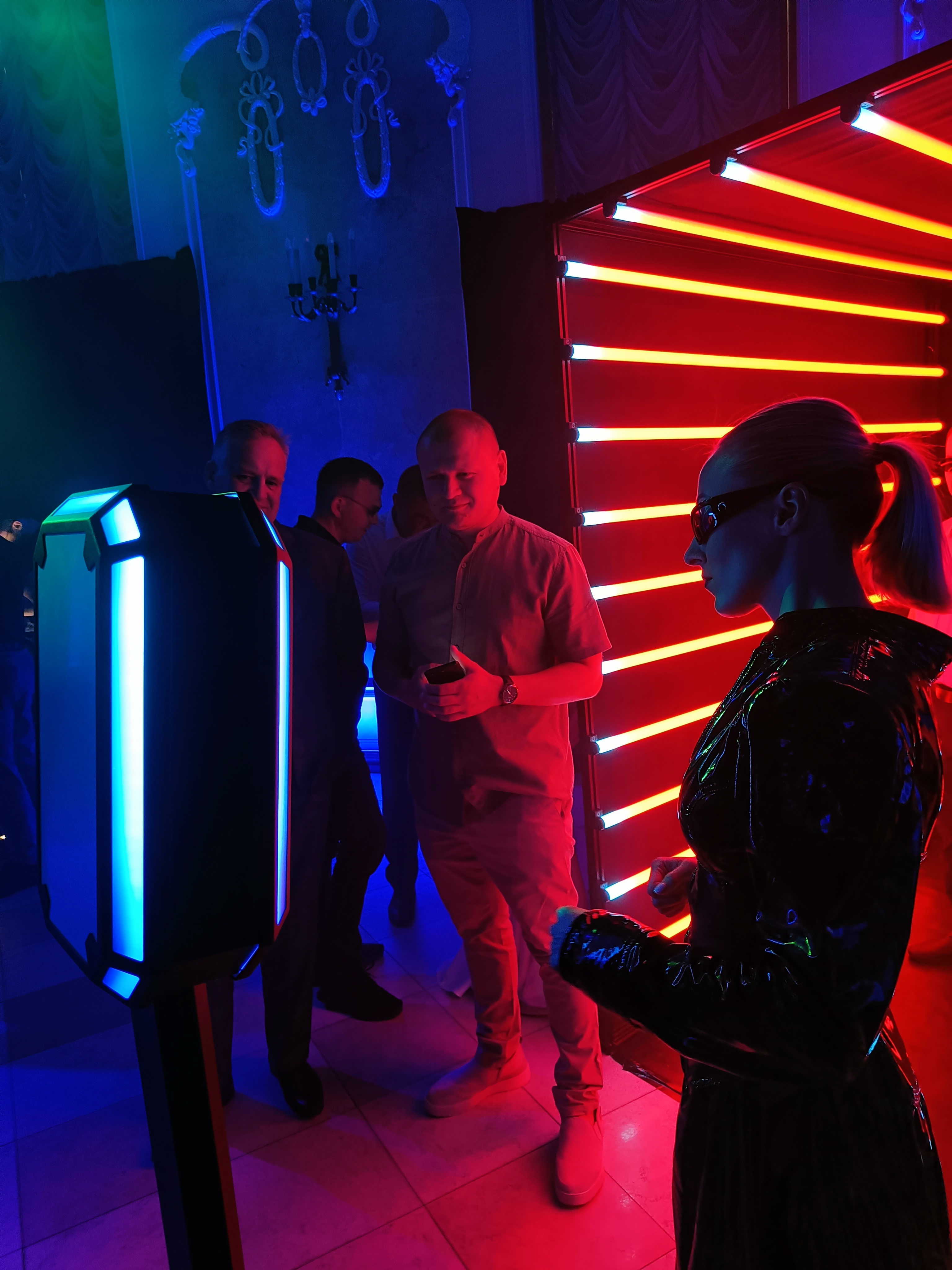 Фотографии гостей сделанные в неоновом тоннеле.