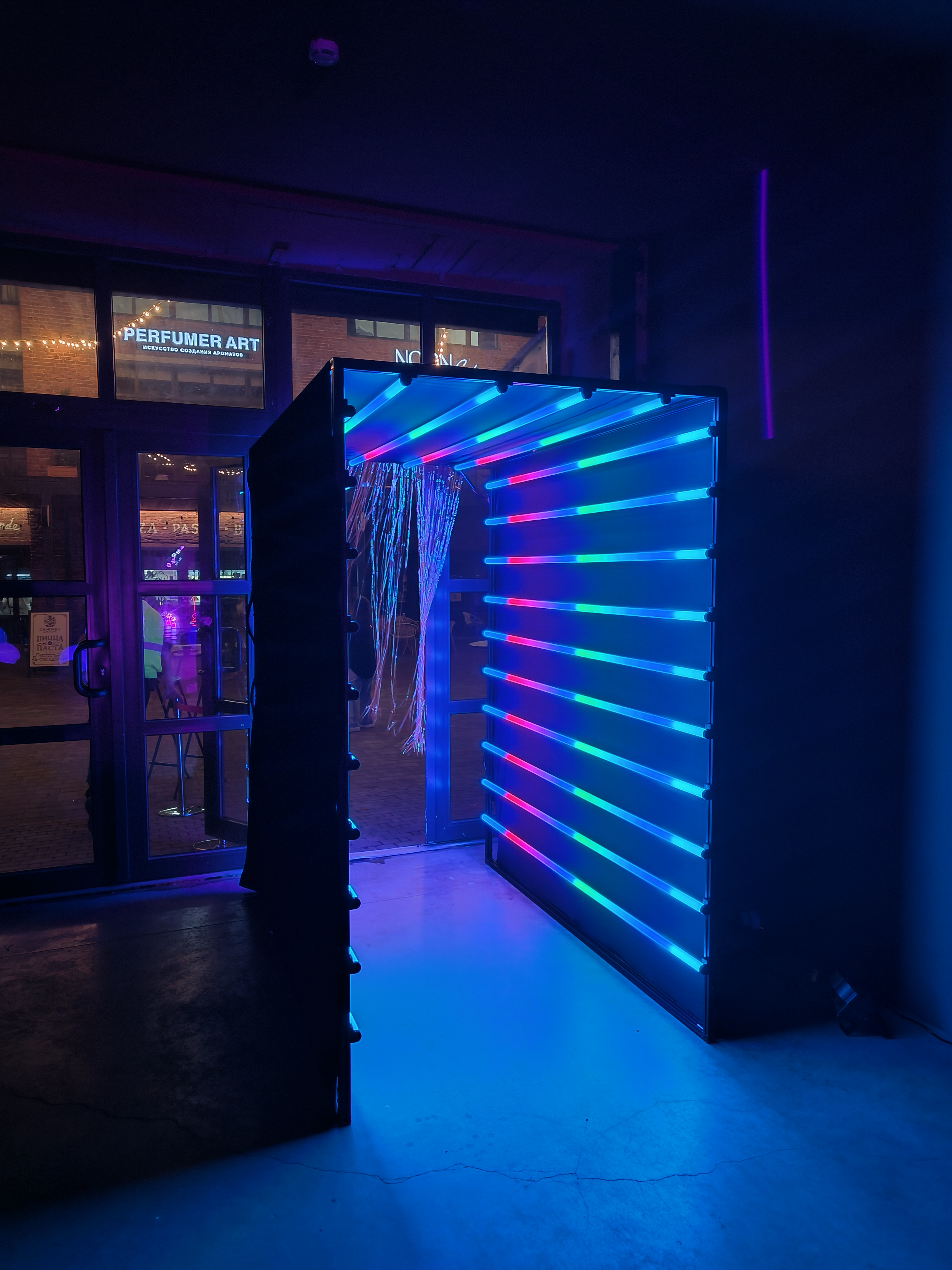 Неоновый тоннель — современная фото-видео зона, способная создать по-настоящему стильные фото и видео. Представляет собой конструкцию с неоновыми лампами, играющими разными цветовыми схемами.